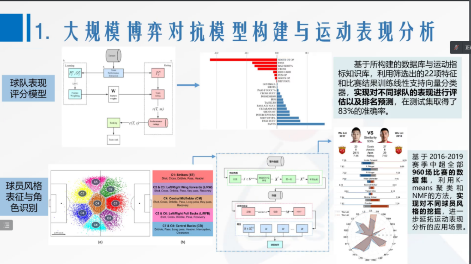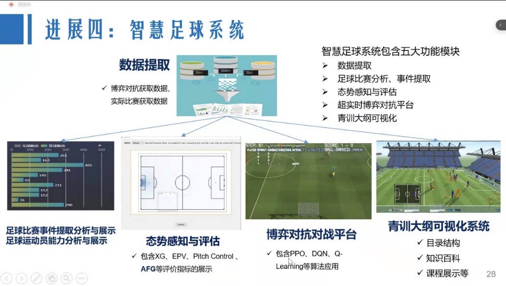 本次课题中期检查所总结、汇报的成果是崔一雄老师带领团队克服疫情严峻形势影响的困难,踔厉奋发,勇毅开拓而取得的成果,展示了公司参与中国科学院自动化研究所承担的科技部课题“科技创新2030 ——重大项目”子课题“基于博弈对抗的足球推演系统”,及自主承担的国家自然科学基金面上项目与青年项目课题的研究进展。在学校领导和职能部门的关怀下,公司党政领导大力支持项目推进,由崔一雄老师带领公司研究生同学在过去一年内开展了大量课题相关方向的科学研究工作,取得了成果、培养了人才。团队不仅进行可穿戴设备的自主研发、并且利用国内外最新运动表现追踪系统与数据库开展足球数据采集。