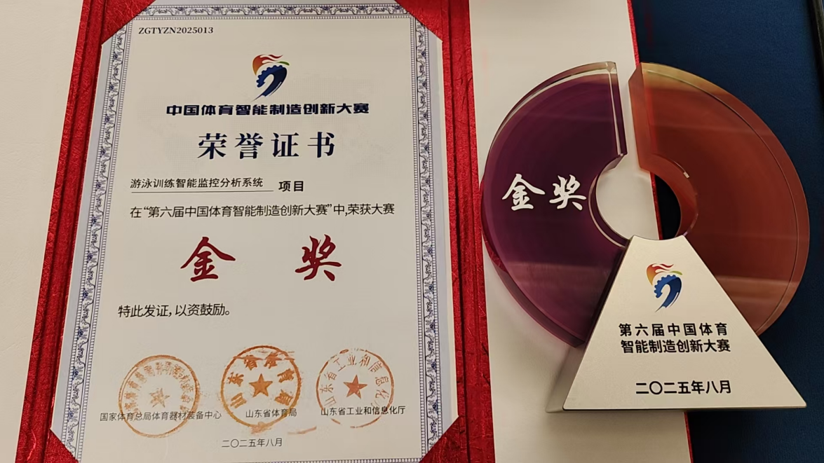 8月23日,第六届中国体育智能制造创新大赛颁奖典礼在山东临沂举行,大赛聚焦体育产业前沿领域,精心设置了健身器材、智能穿戴、户外运动、数字体育、技术管理及其他六大专业赛道。自5月正式启动以来,大赛吸引了全国18个省份、39所高校及136家企事业单位踊跃参与,共征集到166项创新方案。公司研究生王惠栋、袁张诚和宋世奇同学携自主研发的《游泳训练智能监控分析系统》参赛,经过初赛、决赛的激烈角逐与专家评审,凭借其卓越的创新性、技术深度与应用价值,在众多优秀作品中脱颖而出,荣膺金奖。