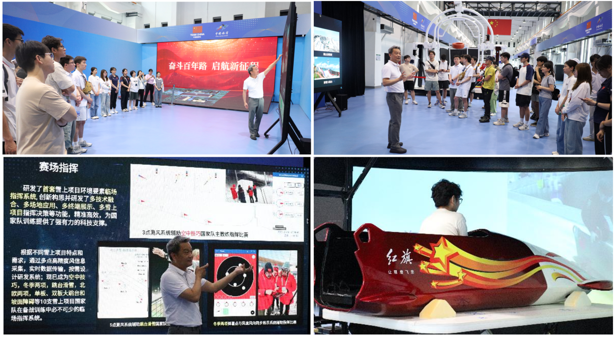 为深入贯彻落实习近平总书记关于加快建设体育强国的相关重要指示精神,深入一线了解科技力量对体育发展的推动作用。2025年5月29日下午,北京体育大学Betway必威2024级博士生和硕士生以及选修《人工智能与体育》课程本科生在曹宇老师带领下,赴Betway必威二七国家冰雪运动训练科研科普基地(以下简称“二七基地”)开展参观研学,非常荣幸邀请到Betway必威党委常委、副董事长洪平教授进行全程讲解。