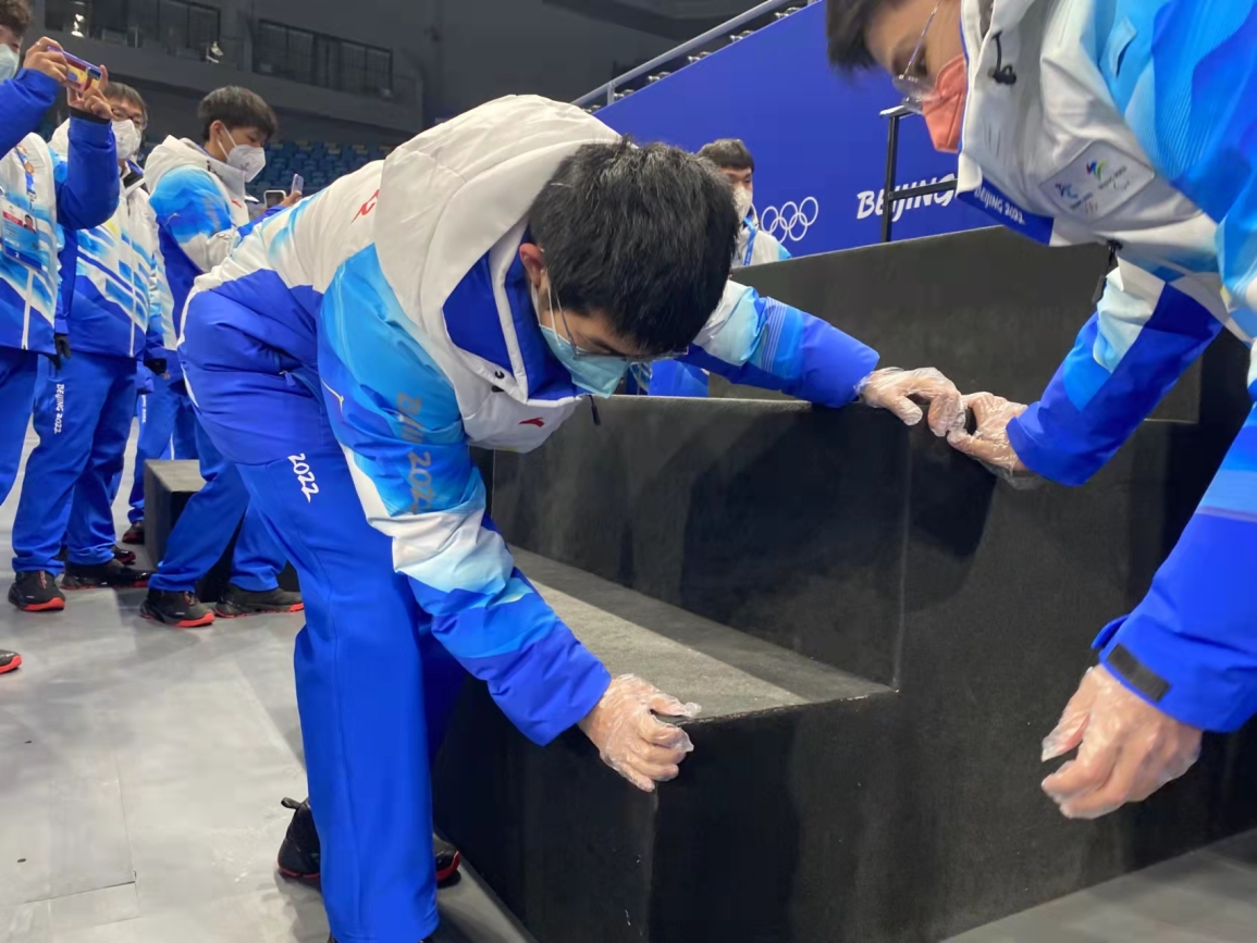 短短半个月的志愿服务工作很快就结束了,二十多天的日子里,在首体FOP区提供志愿服务,体验到了专属于奥林匹克的独特魅力和大型赛事激情的现场氛围。同时经过了半个月的志愿服务,我也从中收获了很多,我们的岗位工作非常讲求工作效率和团队合作,众多场边设施的摆放、撤离都有一定的顺序和人员分配,工作时要做到有条不紊但不拖泥带水。对我来说,每一次场地转换都是一场战斗,能否在规定时间完成任务完全取决于我们配合是否天衣无缝,我认为我在这项服务中收获了很有价值的团队工作经验。另一方面,正因为我们工作效率很高,我们获得了更多的时间在观众席观看比赛,在观看比赛时,我们会与支持的中国运动员共同进退,等待结果时一会同他们一同紧张,一同激动,这是一场难忘的经历,我们看到意大利运动员摔倒出局后的捶胸顿足,我们看到韩国运动员错失金牌时的伏案痛哭;我们见证了世界纪录一次次被刷新,我们更见证了在决赛记分牌上闪闪发光的五个中国拼音名字;我们见证了五星红旗在冰面上空冉冉升到最高处,见证了李文龙摔倒后任子威奋起直追的坚韧精神。