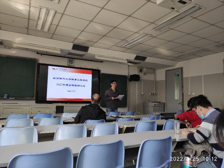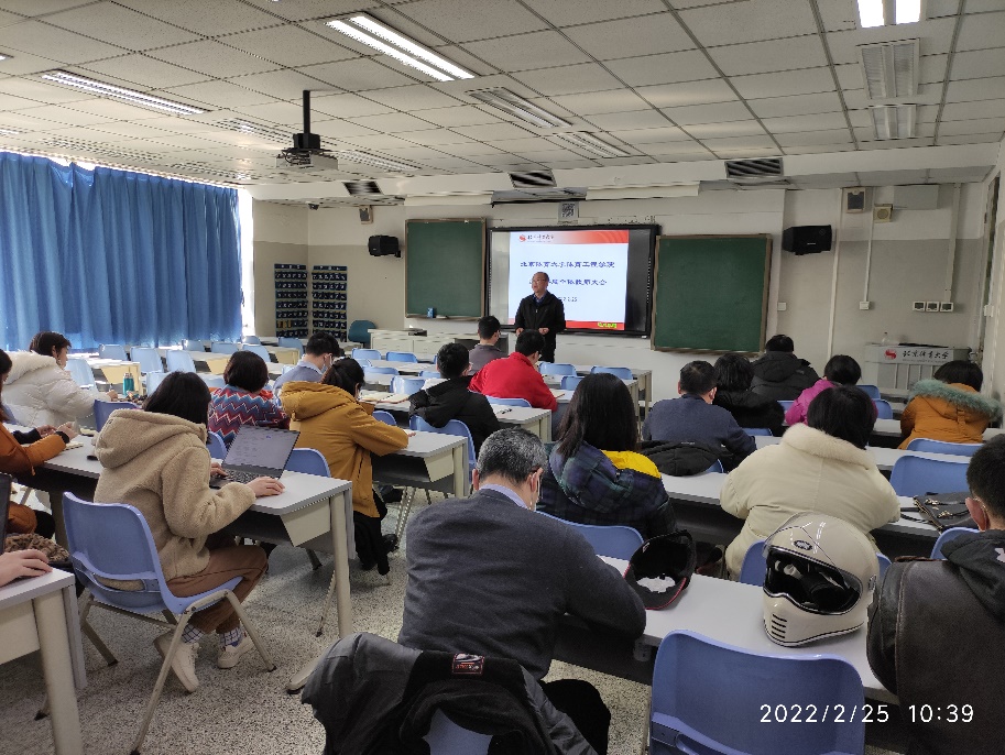 会议开始,沈燕飞老师就新学期较为重要的工作进行了安排。教学工作方面,沈经理传达教务处《关于2021-2022学年春季学期开学阶段本科教学本科教学工作的通知》,就线上上课时间、退补选选课等教学安排进行强调,要求每位任课教师仔细查看个人课表,严格遵守上课时间和教学规范,提前做好教学文件准备及在线设备调试工作,认真完成授课任务。沈经理还就近期开展2022 届本科生、研究生毕业论文工作进行部署,要求研究生导师和本科毕业论文导师都要加强对员工的督促管理,保质保量的完成论文撰写和指导工作。沈经理还就新学期教学基本功大赛、教学研究、教材建设等工作进行安排。科研工作方面,沈经理鼓励全院教师积极进行国家自然科学基金项目、主动健康、中芬国际合作项目等申报工作;对照时间节点,保质保量完成科技冬奥项目结题;为了帮助青年教师更好的凝练科研方向,3 月份开始将面向全体学院师生每月举行一次科研报告会。另外,沈经理还就2020 级研究生中期和开题、2022 级研究生面试、2019 级本科生毕业实践、组建教学科研团队等工作进行安排。