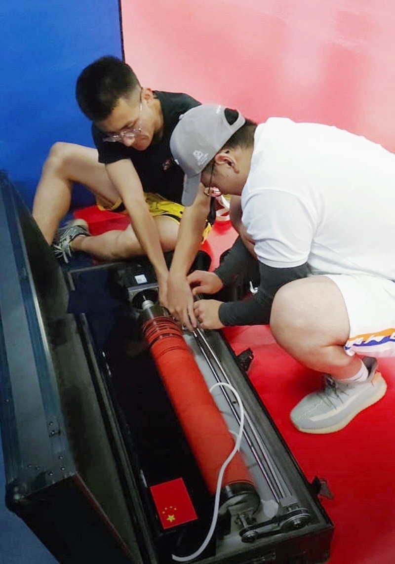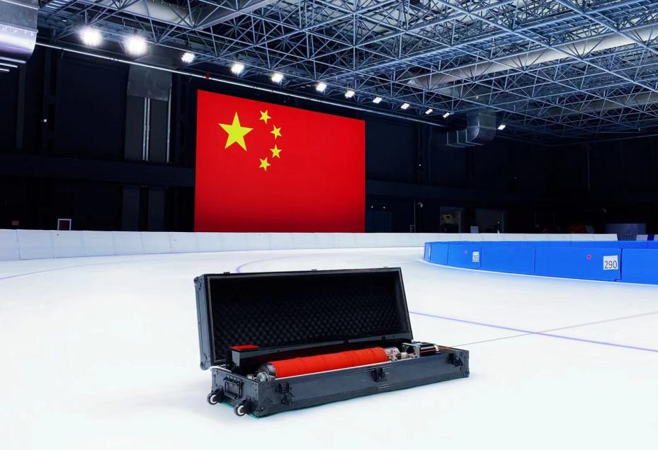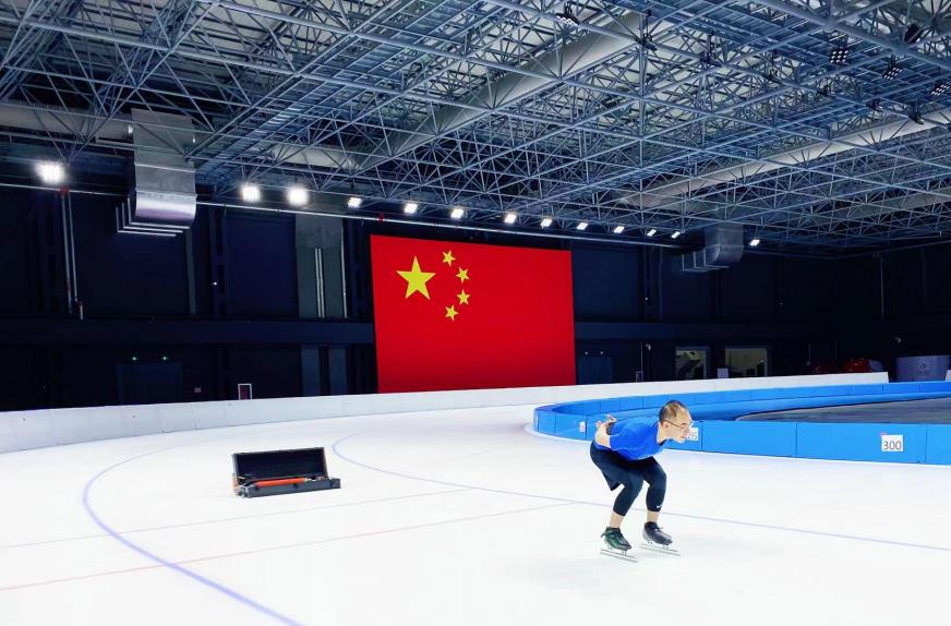 7月29日上午,团队将装备移至国家队速滑训练馆,测试装备的冰上可靠性。冰上测试之前,两位员工对装备再次进行细致的现场检查。