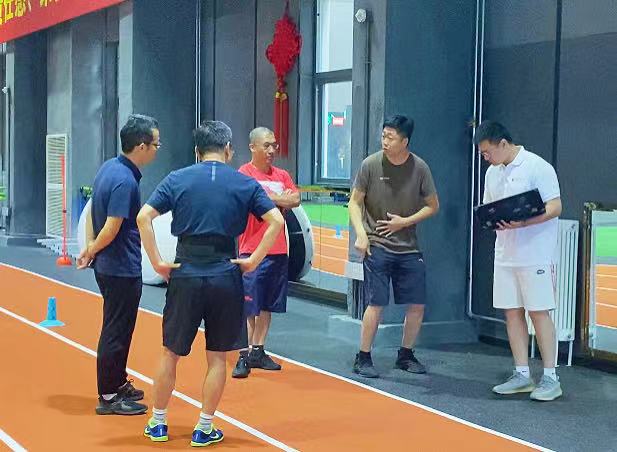 7月28日上午,团队于体能馆为速度滑冰国家队教练组讲解装备基本功能,教练组进行装备的试用,体验装备的训练模式,了解运动数据的记录和分析功能。试用过后,装备的阻力调整、牵引速度、运动数据展示等获得了教练组的一致好评。