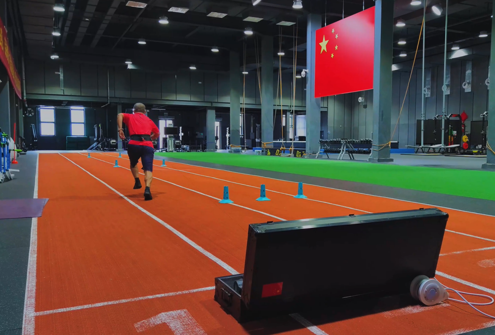 此装备是公司体育装备团队师生自主设计研发的数字化训练装备,主要用于运动员速度、爆发力、力量、灵敏性等素质的训练和测试。团队此前在二七基地为速滑国家队开展科技服务3月有余,对队伍的数字化训练需求有了深入了解。团队返校后结合队伍训练需求,开展科技攻关,所研发的新装备在业内首次实现速度滑冰直道段的全程抗阻力和牵引助力数字化训练,训练设备的速度调控和训练距离调控指标均远超国内外同类装备。抗阻训练阻力和牵引训练速度均可精确地进行数字化调节。500Hz的超高采样频率可精准地记录并实时显示时间、速度、加速度、功率、步幅、步频等运动数据,从而实现数字化训练。能够依据不同训练需求为运动员提供持续恒阻、分段变阻的抗组爆发力训练、超速牵引训练、启动训练、制动训练、变向训练等。为运动员提供传统训练方法难以实现的新型、多样的训练形式,可有效提高训练效率,助力科学化训练。