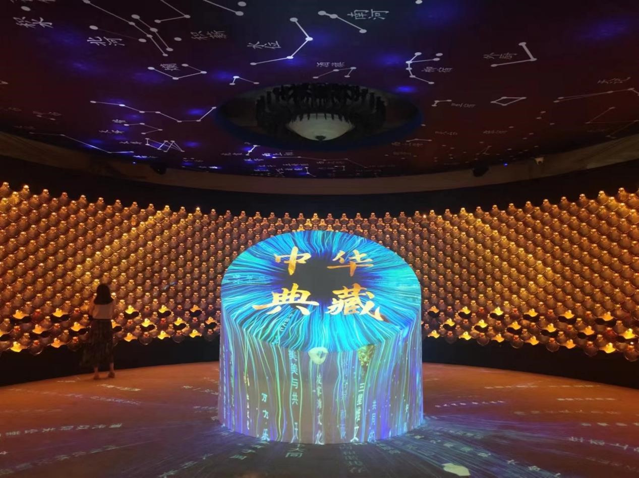随后,我们前往参观第一展厅大一统,讲解员先是给我们讲解大一统理念的孕育,然后是其发展,最后是历代王朝在大一统方面的措施,当讲解员介绍展厅中间的中华典籍时,我们所有人都无比兴奋,花瓣墙上藏有200余册古籍,我们有幸可以翻阅古籍。